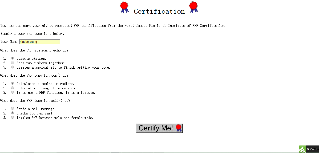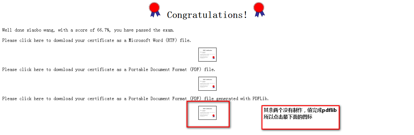 這里我為了學習thinkPHP,所以使用的是thinkPHP框架,我們的目標是根據用戶的答題情況->作出成績判斷->生成用戶的pdf成績證書