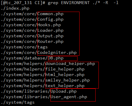 default: exit('The application environment is not set correctly.');為什么一開始就要配置ENVIRONMENT?這是因?yàn)椋珻I框架中很多組件都依賴于ENVIRONMENT的配置,我們看一下system中,引用ENVIRONMENT的地方: