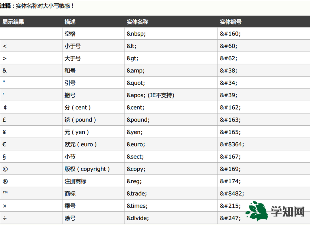 特殊的字符 對應的實體字符