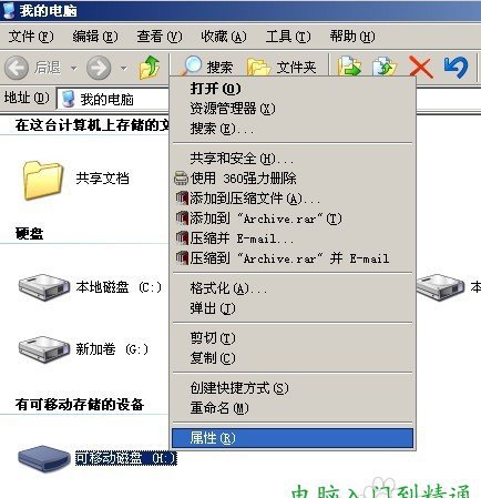 2、右擊代表U盤的盤符,選擇屬性;