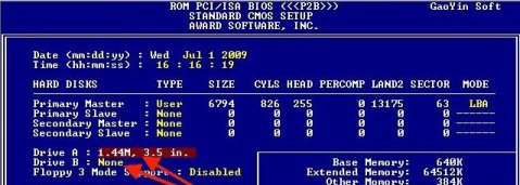 重啟電腦立即按Delete鍵進入BIOS程序, BIOS因生產廠家不同而有所不同,但大同小異,在Standard CMOS Setup(標準CMOS設定)選項按回車鍵進入子選項,