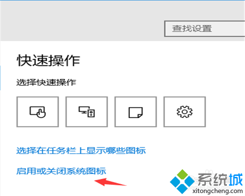 4、接下來(lái),在“通知和操作”窗口中的右側(cè)窗口中點(diǎn)擊“啟用和關(guān)閉系統(tǒng)圖標(biāo)”,看下圖圖示。