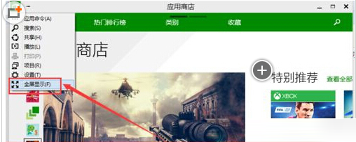 3、如果大家想要全屏顯示應用商店窗口的話,則需要點擊…這個圖標,然后在出現(xiàn)的菜單中選擇全屏顯示即可。