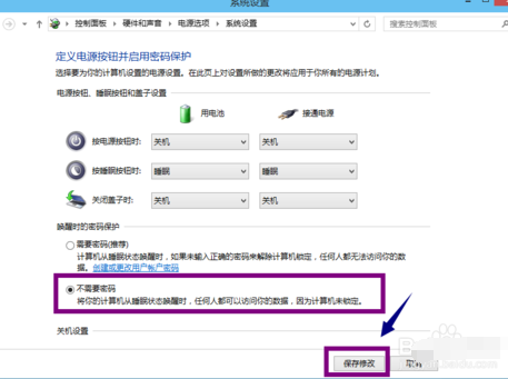 7、勾選下方的不需要密碼,點擊保存修改按鈕,如下圖所示