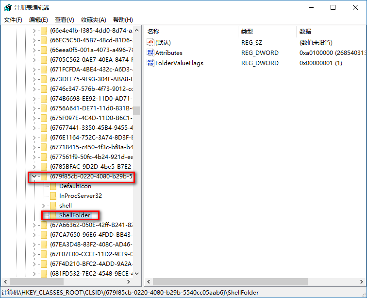 注冊表路徑:HKEY_CLASSES_ROOTCLSID{679f85cb-0220-4080-b29b-5540cc05aab6}ShellFolder
