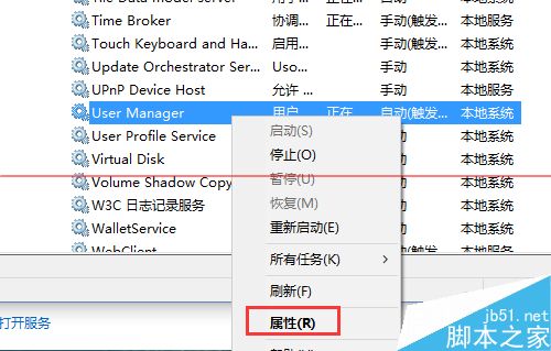 3、找到User Manager,選中,點(diǎn)擊右鍵,打開(kāi)屬性。