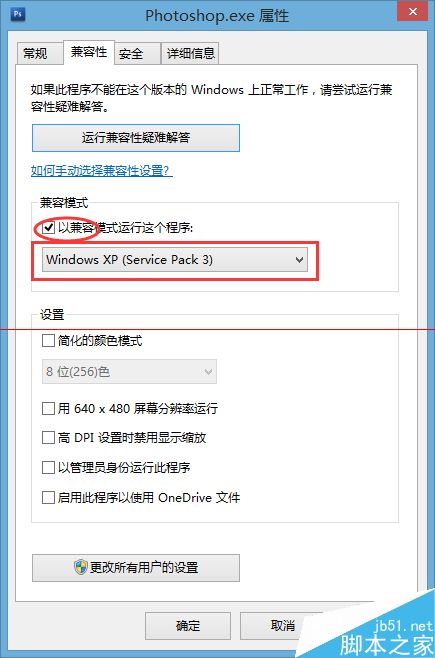3、勾選“以兼容模式運行這個程序”,在下面的下拉菜單中選擇“Windows xp (service pack 2)”或者“Windows xp (service pack 3)”選項,然后點擊確定按鈕。