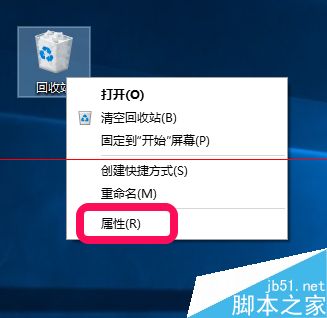 3、然后,你只要按下面的步驟做,就能很輕松的刪除文件了。右鍵點擊“回收站“,在彈出的快捷菜單中選擇”屬性“。