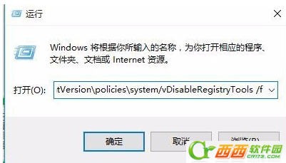 2、輸入 reg.exe delete HKEY_CURRENT_USERSoftwareMicrosoftWindowsCurrentVersionpoliciessystem/vDisableRegistryTools /f 然后點擊確定即可解鎖注冊表