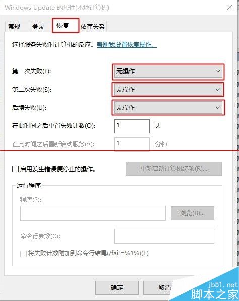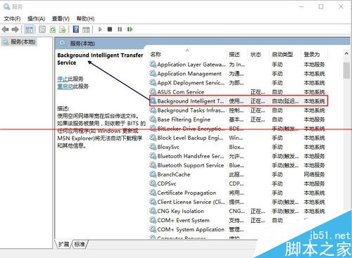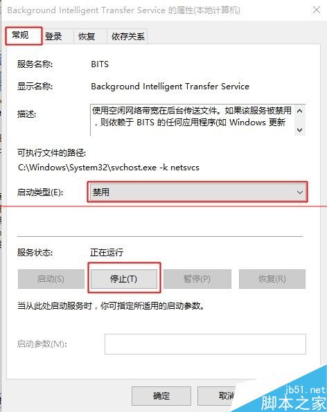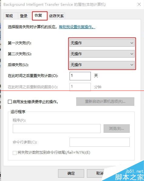 2、在如圖界面上我們可以找到”Windows Update“和“Background Intelligent Transfor Service”并右擊”屬性(R)“在“常規”和“恢復”選項卡中如圖設置。