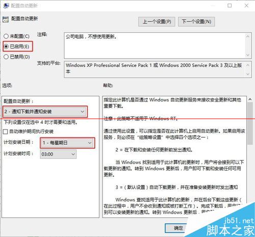 2、在打開的界面左邊您可以看到“計算機配置”按照以下樹狀圖依次查找:“計算機配置>>管理模板>>Windows更新>>配置自動更新”,右擊“編輯”選擇“已啟動”并同時選擇“2 - 通知下載并通知安裝”,推薦選擇圖上的“1”確保后顧。