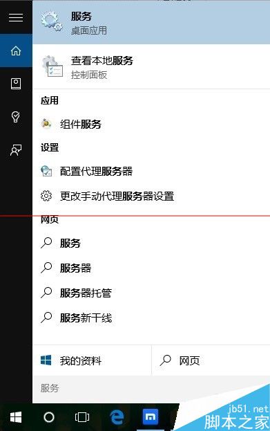 1、在Windows10系統內置小娜(Cortana)輸入“服務”,按提示打開”服務“,如圖;或者右擊Win開始選擇“運行”輸入“service.msc”回車進入,效果與上相同。