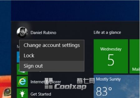 現在,請注銷Windows 10,并重新登陸。開始菜單>選擇你的相片>選擇“注銷”