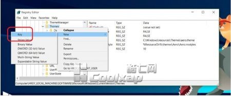 如果你找不到 Personalize子項的話,在Themes上單擊鼠標右鍵,選擇新建>項,并取名Personalize。