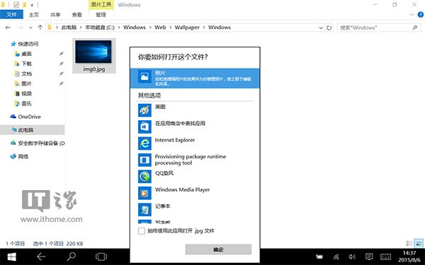 全新安裝Win10正式版的用戶,如果想繼續(xù)使用傳統(tǒng)照片查看器作為默認(rèn)應(yīng)用的話,可能你會(huì)發(fā)現(xiàn),無(wú)論是在文件的右鍵打開(kāi)方式還是在Modern版默認(rèn)應(yīng)用設(shè)置中都找不到傳統(tǒng)照片查看器的影子。在傳統(tǒng)控制面板中照片查看器只能選擇與tiff文件進(jìn)行關(guān)聯(lián)。