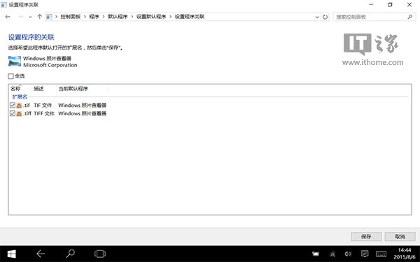 ▲控制面板中的文件關(guān)聯(lián)中照片查看器只能選擇與tiff文件進(jìn)行關(guān)聯(lián)