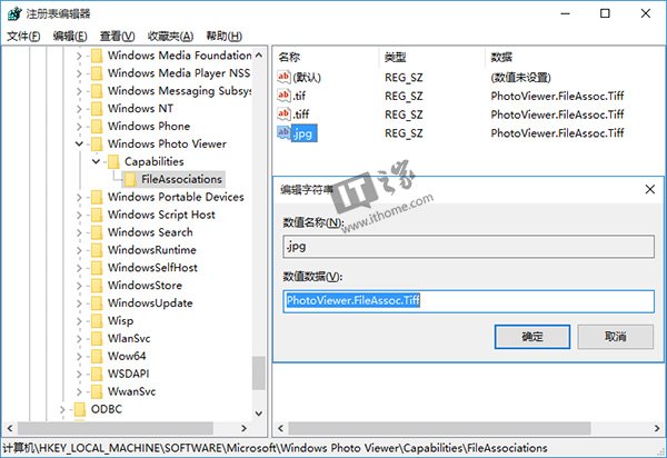 其他類型圖片設(shè)置方法同上,在添加注冊(cè)表鍵值時(shí),數(shù)值數(shù)據(jù)一律填寫(xiě)為“PhotoViewer.FileAssoc.Tiff”。