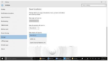 2、當你將頁面向下滾動時,你將能看到存儲不同類型媒體文件到特定區域的選項。如果你想要自動存儲你的音樂到一張你剛剛插入的內存卡中,或者存儲電影到一個你剛剛設置好的外接硬盤上的話,這將會是非常方便的。