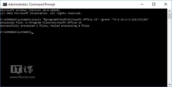 icacls "%programfiles%Microsoft Office 15" /grant *S-1-15-2-1:(OI)(CI)RX