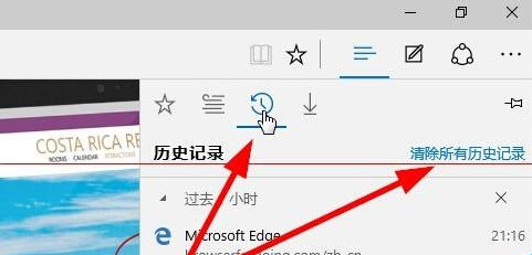 2、定位到“歷史記錄”圖標(如圖所示),然后點擊“清楚所有歷史記錄”
