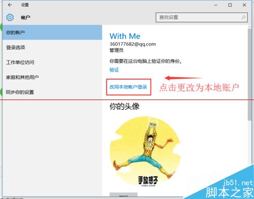 7、點擊“改為本地賬戶登錄”,一般情況下,是由于設置了聯網賬戶(非本地賬戶)造成憑據驗證失敗。所以切換之后,便可正常。(如果你本來就是本地賬戶,建議重啟之后測試仍舊失敗,可繼續嘗試切換為聯網賬戶)