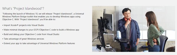 微軟在今年的Build大會上公布了win10系統(tǒng)兼容安卓的“Project Astoria”計(jì)劃,在Win10手機(jī)兼容Android上的舉措讓人看得激動人心,其實(shí)微軟還發(fā)布了兼容iOS應(yīng)用的“Project Islandwood”計(jì)劃,現(xiàn)在win10兼容iOS應(yīng)用的橋接工具也已經(jīng)對外發(fā)布。