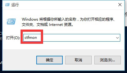 2、從打開的“運行”窗口中,輸入命令“ctfmon”并按回車鍵進行確定,此時輸入法將重新加載。
