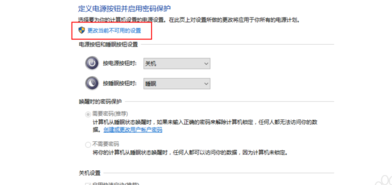 6、這時(shí)發(fā)現(xiàn)快速開機(jī)項(xiàng)不可操作,就按上面的"更改不可用的設(shè)置"