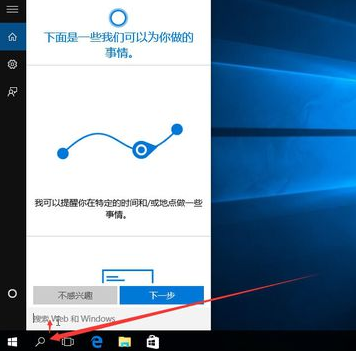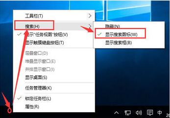 6、設置完成后,在任務欄上就有一個小搜索圖標了。功能和“搜索web和windows”的窗口一模一樣!