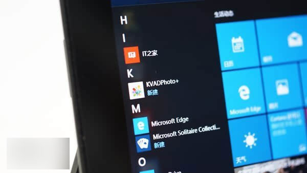 雙手握持Surface Pro的情況下,左手的拇指便可以很好的操作整個開始菜單左邊欄部分,向上滑動即可打開所有程序列表,右側的動態磁貼顯示內容豐富齊全,看些最新天氣、資訊信息等,十分清晰好用。如果你更習慣Win8、Win8.1開始屏幕的話,還可以在“設置—個性化—開始”中將“使用全屏幕開始菜單”一項選中,即可回到類似Win8.1的全屏開始屏幕,左側的邊欄也會自動隱藏。