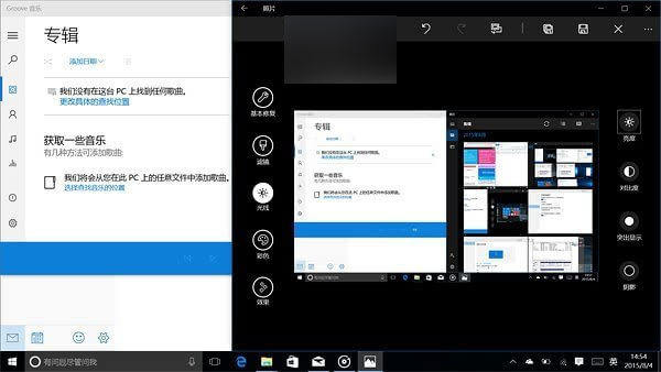 除了強化版的分屏功能,Win10還加入了虛擬桌面功能,可以直接從屏幕左側右滑打開任務管理界面,從而添加或刪除桌面,后臺應用程序也可以自由拖動分配到相應的桌面里。在試用中,我們把一個桌面用來處理文字內容,另一個桌面用來處理圖片和播放音樂,兩者之間通過手勢或點擊自如切換,對于提升工作效率絕對是大有裨益。