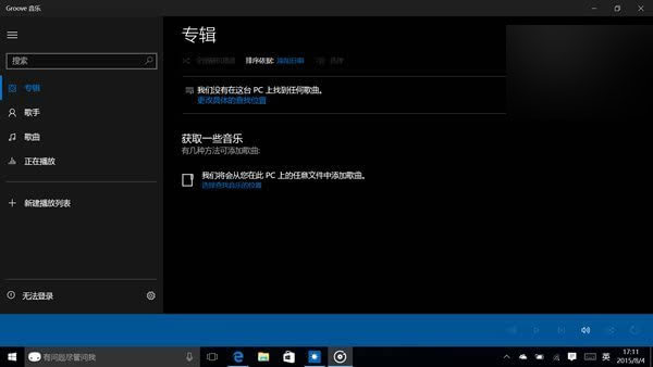 ▲Groove音樂以及電影和電視在線服務也是Win10中非常重要的部分,只是暫時與國內用戶無緣,只能當作普通的播放器來使用。
