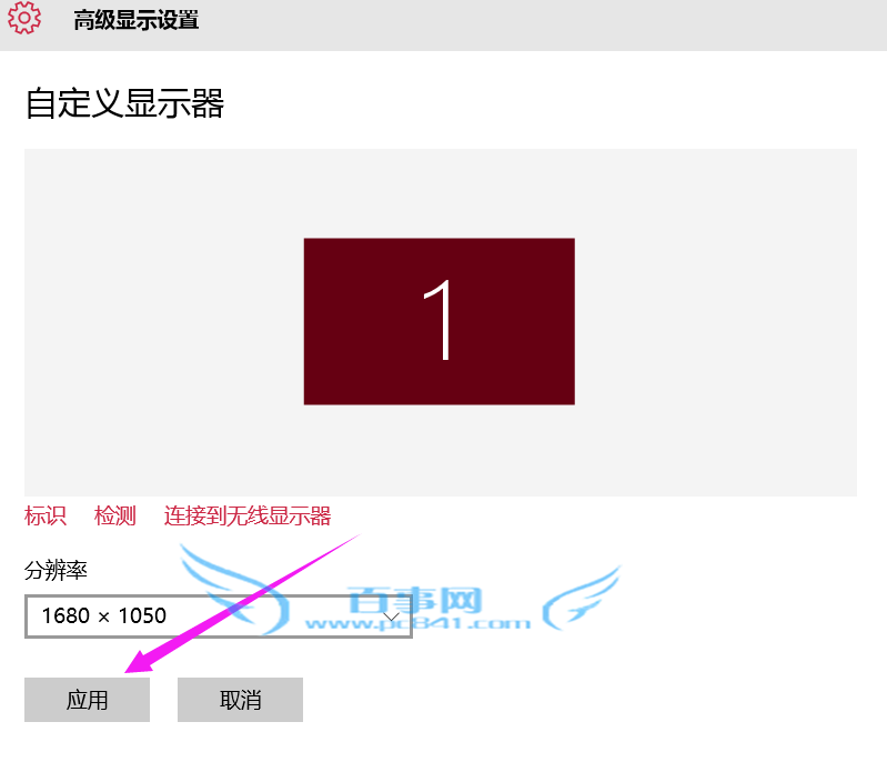 選擇好分辨率之后會回到如圖所示面板,此時我們單擊底部的“應用”按鈕即可保存分辨率。