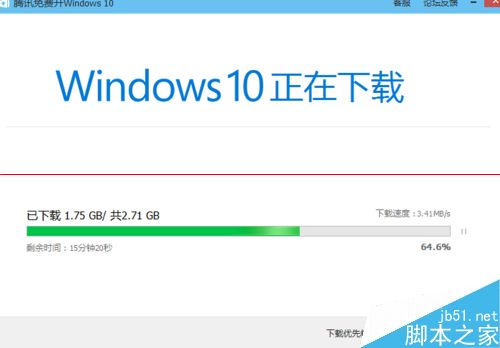 3、檢測完成,自動會下載 :騰訊免費升Windows 10.exe