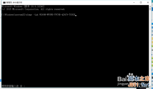 3、提示安裝成功后繼續鍵入:slmgr -ato