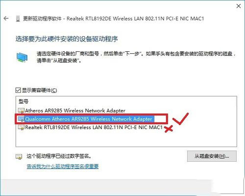 3、選第二個“Qualcomm Atheros AR9285 Wireless Network Adapter”,而不是第三個“Realtek RTL8192DE Wireless LAN 802.11N PCI-E NIC MAC1”;