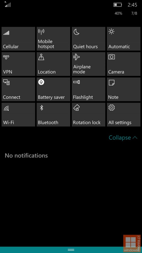 日前微軟面向Slow Ring通道用戶開放了版本號為10162的Windows 10 Insider預(yù)覽版下載,而今天相同版本號為的移動端Windows 10截圖也在網(wǎng)絡(luò)上曝光。根據(jù)波蘭科技媒體提前曝光的數(shù)張截圖來看,10162版并未帶來太過于明顯的變化,主要帶來了全新的壁紙(包括Hero壁紙)、Store磁貼的細節(jié)調(diào)整和更大的電源圖標等等。