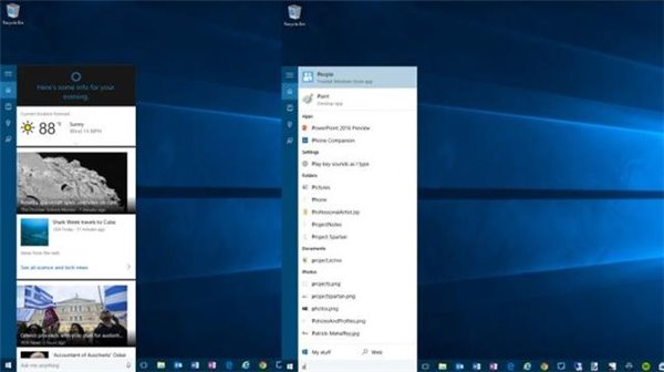 Windows Phone的私人助手Cortana如今也被加入到了Win10系統(tǒng)當中。Cortana的功能非常強大,你可以用它來搜索硬盤內的文件,系統(tǒng)設置,安裝的應用,甚至是互聯網中的其他信息。作為一款私人助手服務,Cortana還能像在移動平臺那樣幫你設置基于時間和地點的備忘。