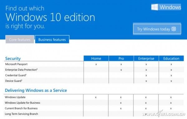 在即將升級Windows 10之前,你可能很想知道Home家庭版和Pro專業版之間的區別,所以微軟特地發布了一張表,讓你更清楚應該選擇哪個版本。雖然好像用處也沒有很大的樣子