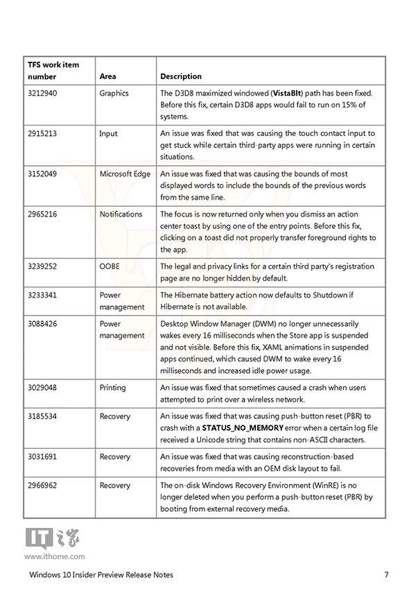 和以往相同,本次曝光更新日志的還是俄羅斯爆料大神WZor。從這份日志中可以看到,進入最后階段的Win10開發早已沒有內置軟件更新的內容,主要工作集中在Bug修復上面。