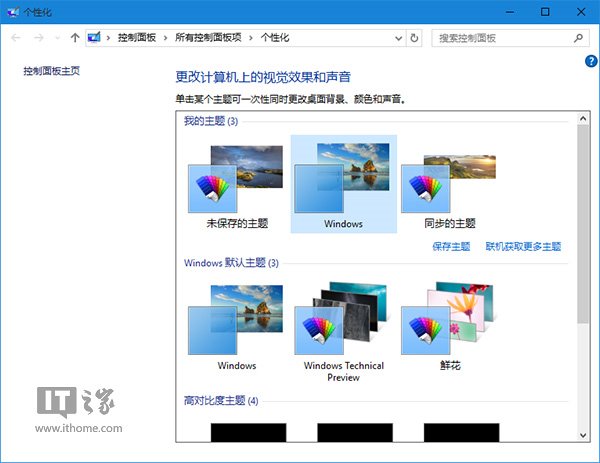 若想回到Win10默認(rèn)標(biāo)題欄樣式,切換到其他任何默認(rèn)主題即可。