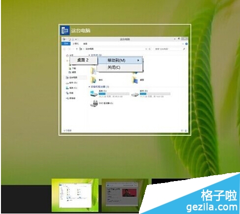 4、不同的桌面還可以把程序放到另一人桌面中去。在一個桌面上的一個程序上點右鍵然后就可以看到如下圖所示效果。移動到桌面X。是不是有意思有點用吧!