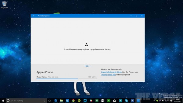 此外,微軟還在build 20147中加入了一個手機伴侶軟件,不過發布初期僅支持自家的移動系統,像iOS、Android可能要等上一段時間。我們知道,微軟打算打造一套將桌面客戶端跟移動客戶端一體化的系統,未來,用戶在下載的軟件在Windows 10上也能使用。而為了推廣自家的軟件與服務產品,微軟在新版本中加入了"Get Office"、"Get Skype" ,當用戶點擊它們的時候系統就會下載Office和Skype應用。