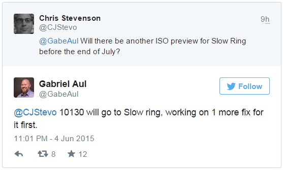 這意味著Windows Build 10130已經逐漸穩定,發布至“Slow Ring”的同時該版本的ISO鏡像文件也會同時發布。