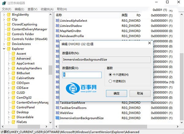 3、 新建DWORD(32位)值,命名為ImmersiveIconBackgroundSize(數(shù)值數(shù)據(jù)使用0或1均有效)
