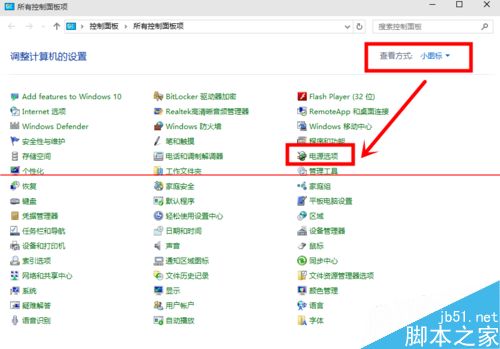2、在控制面板里 (查看方式為小圖標)。點擊“電源選項”