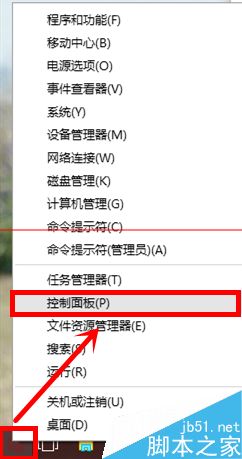 1、右擊開始圖標 打開“控制面板”