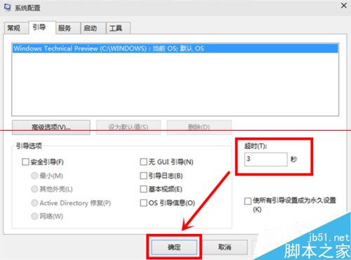 5、接下來我們在”超時”對話框中輸入“3”,最后點擊“確定”