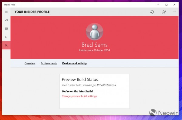 下面是Windows 10 Build 10114中的新版Insider Hub: