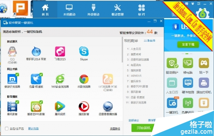 在驅動人生裝機界面,你可以勾選你需要的常用軟件然后點擊開始裝機,這樣就省去了到官網下載的麻煩,一鍵就可以全部搞定了。驅動人生的這個裝機界面,涵蓋了,工作、學習、娛樂、各個領域的常用軟件,是我們日常工作生活所中的貼心小軟件。基本在這個界面,你就能找到所有你需要的軟件。